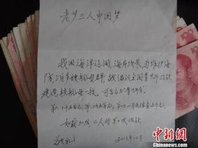 ????柳州團(tuán)市委的工作人員拆開信封一數(shù)共有5000元民幣。信封內(nèi)附有一張紙條,上面寫著:老少三人中國夢(mèng)。我國海洋遼闊, 海岸線長,為維護(hù)海防,須多艘航母群,故倡儀全國共少年捐款建造核航母一艘,可否名為“青少年號(hào)”。弟:1千五百元;哥:1千五百元;爺爺一個(gè)月退休金2千元。如獲批準(zhǔn),不久將第二次捐款。