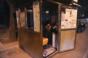 ????昨晚,王秀清縮在一間廢棄的崗?fù)だ镞^夜。京華時報記者徐曉帆攝