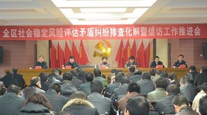 ????會(huì)議通報(bào)了2013年全區(qū)社會(huì)穩(wěn)定風(fēng)險(xiǎn)評(píng)估工作進(jìn)展情況,區(qū)委常委、常務(wù)副區(qū)長李繼明就貫徹落實(shí)黨的十八屆三中全會(huì)精神和中央、省、市關(guān)于社會(huì)穩(wěn)定評(píng)估和矛盾糾紛排查化解及信訪工作的決策部署,搞好全區(qū)社會(huì)穩(wěn)定風(fēng)險(xiǎn)評(píng)估工作,積極開展矛盾糾紛排查化解,認(rèn)真做好信訪工作作了安排部署。