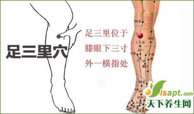 ????3、再一個(gè)就是足三里。足三里既能補(bǔ)脾胃之氣,又能補(bǔ)元?dú)?。上文說過,水谷之氣是氣的一個(gè)重要組成部分,靠脾胃運(yùn)化而來,所以補(bǔ)氣用足三里是必不可少的。用足三里保健,最好是艾灸,每次用艾條灸20~30分鐘,可以經(jīng)常灸它。