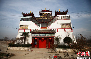 ????走進未央宮街辦東葉寨村,就看到不遠處豎立著一棟別出心裁的建筑物?!澳鞘敲裾?,建得和皇宮一樣?!甭愤^的一些村民說。走近該建筑看到,這棟高30多米、寬30多米、長40多米的房子,采用仿古設計,但上半部分采用玻璃外墻,又富有現(xiàn)代感。
