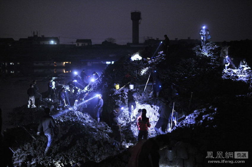 當(dāng)記者一行抵達(dá)宣城市水陽(yáng)鎮(zhèn)時(shí),已是中午時(shí)分,但整個(gè)小鎮(zhèn)上依然車(chē)水馬龍,其中不乏外地牌照?!皞餮允遣皇钦娴??在哪里挖寶?”記者一行向一個(gè)飯店店主了解情況。飯店女老板問(wèn)我們是不是來(lái)收寶的,并小聲說(shuō),里面包間里正在吃飯的六個(gè)人都是收寶的,有本地宣城人還有馬鞍山人和南京人,“他們?cè)谶@里已經(jīng)快兩個(gè)月了?!碑?dāng)記者詢(xún)問(wèn)在哪里挖寶時(shí),女店主介紹,只要到江堤上,就可以看見(jiàn)?!安贿^(guò)這段時(shí)間白天挖寶的人沒(méi)有,可能要等到晚上?,F(xiàn)在派出所派人看守,沒(méi)人有這個(gè)膽量?!迸曛鹘ㄗh,最好不要晚上去收寶,現(xiàn)在出現(xiàn)了一些假的寶貝,晚上看不清,容易上當(dāng)。