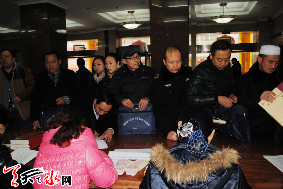 天天天水網(wǎng)訊(記者 黨小軍 張文都)12月26日,進入寒冬的天水,空氣格外清新。在金龍大酒店一樓大廳,參加政協(xié)第六屆天水市委員會第三次會議的各位政協(xié)委員,絡繹不絕地信步走進會議報到處,簽到領取參會的各項準備資料,大會的各項工作已準備就緒。