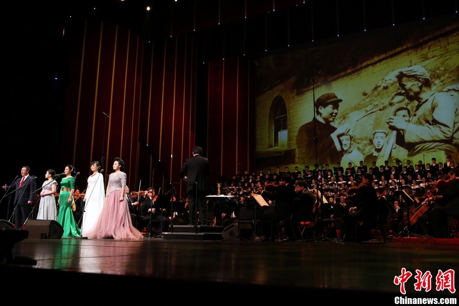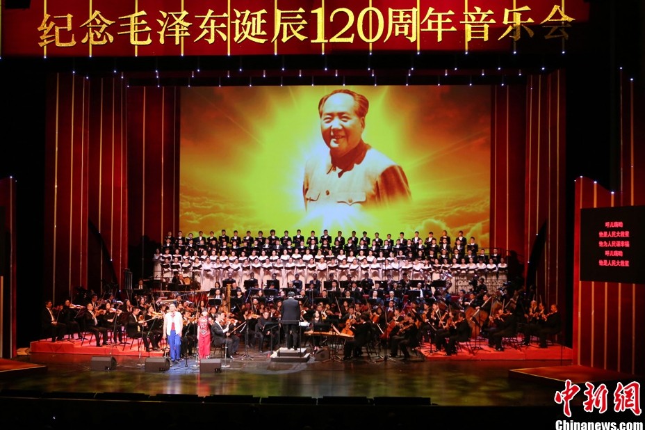 12月25日晚,《人民的毛澤東》紀(jì)念毛澤東誕辰120周年音樂會(huì)在國家大劇院舉行,上千名首都各界群眾共同觀看了這臺(tái)音樂會(huì)。據(jù)悉,該場音樂會(huì)由國家大劇院、中國音樂家協(xié)會(huì)共同主辦,以毛澤東詩詞為主要?jiǎng)?chuàng)作題材,勾畫了中國革命各個(gè)歷史時(shí)期的重大歷史事件。中新社發(fā) 李慧思 攝