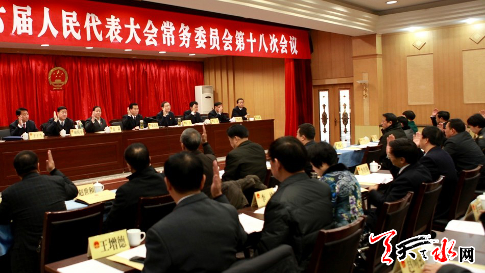 ??? 天天天水網訊(記者 楊璟)12月27日,天水市第六屆人民代表大會常務委員會第十八次會議在天水迎賓館召開。