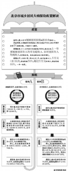 ????昨日,《北京市城鄉(xiāng)居民大病醫(yī)療保險試行辦法》對外發(fā)布,凡北京市城鎮(zhèn)居民基本醫(yī)保和新農合參保人,年度醫(yī)療費用超過指定額度,超出支出可按比例報銷,且報銷不設封頂線。2013年的大病今年即可報銷,一年一結算。