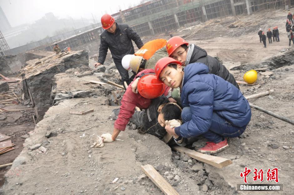重慶涪陵一建筑工地塌方 1名工人被卡“石縫”