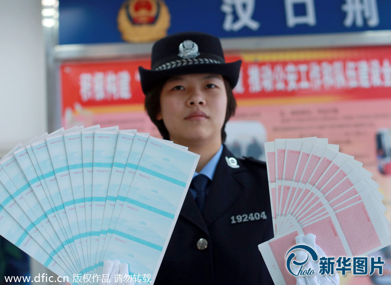????2014年01月13日,湖北省武漢市,民警清點大量非法制作的成品,半成品假票和制假工具。
