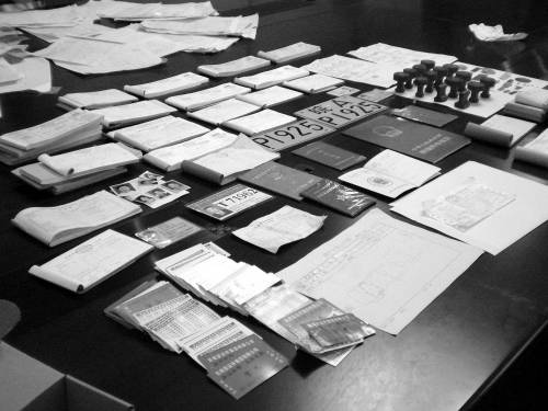 ????利用偽造發(fā)票、證件、印章詐騙醫(yī)療基金案件層出不窮,暴露醫(yī)療資金監(jiān)管體系漏洞。圖為2009年安徽省蕪湖市警方成功破獲的一起詐騙農(nóng)村醫(yī)療基金案件,現(xiàn)場查獲了各類假發(fā)票、印章等物件。CFP供圖