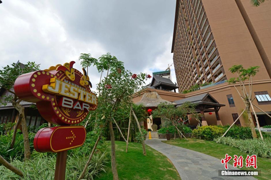 ????1月26日下午,三亞灣紅樹林度假世界酒店花園指引娛樂吧方向的標示牌。有媒體25日曝光該酒店娛樂吧變“賭場”。中新社發(fā) 駱云飛 攝