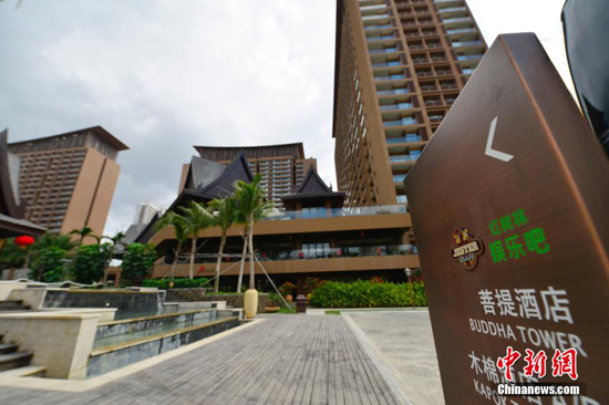 ????1月26日下午,三亞灣紅樹林度假世界酒店停車場指引娛樂吧方向的標(biāo)示牌。中新社發(fā) 駱云飛 攝