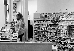 ????美國當?shù)貢r間2月5日,在華盛頓一家CVS Caremark藥店內(nèi),一名工作人員站在裝滿香煙的貨架前。美國第二大連鎖藥店CVS宣布,其在全美范圍的7600多家藥店將在10月1日之前逐步停止出售煙草制品。