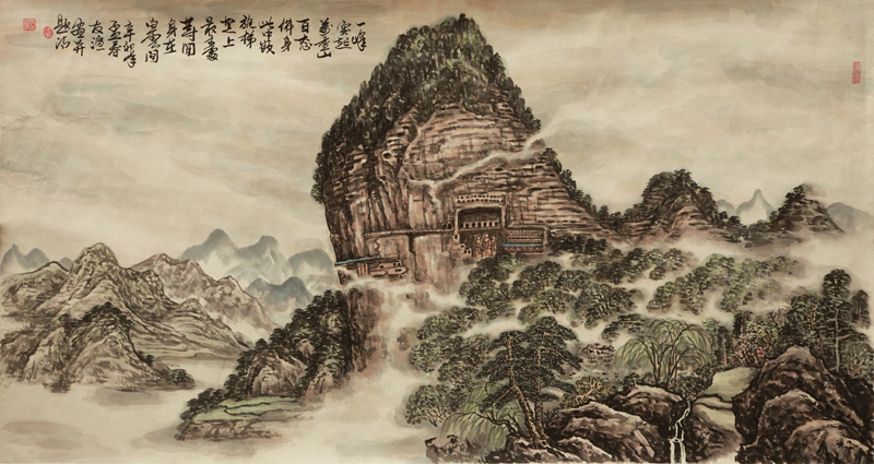 在麥積山風(fēng)景管理局工作將近20年的張友渲先生,曾設(shè)計(jì)麥積山景區(qū)導(dǎo)游圖、麥積山風(fēng)景區(qū)紀(jì)念門票等,足跡遍布秦州山水之間。創(chuàng)作的山水畫作,也多以秦州山水為主要題材。他筆下的麥積山、仙人崖等名勝風(fēng)光,筆墨蒼勁潤澤,畫面清新古樸。其純粹寧靜的畫面,透露出了他數(shù)十年修持的功底。