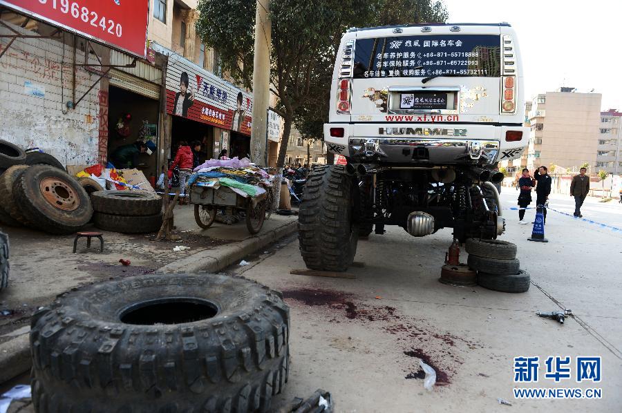 ????這是2月19日拍攝的事故發(fā)生現(xiàn)場(chǎng)。當(dāng)日中午,位于昆明市紅云路上的一家汽車輪胎經(jīng)營(yíng)部發(fā)生一起輪胎爆炸事件,導(dǎo)致1人死亡、1人受傷。目前,事故仍在進(jìn)一步調(diào)查處理之中。新華社發(fā)(胡超 攝)?