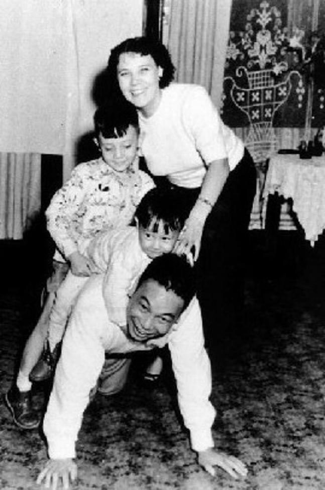 ????1950年代,蔣經(jīng)國(guó)回到家和小孩笑鬧一團(tuán)。孝勇要騎馬,孝武來(lái)參一腳,媽媽在旁咯咯笑,但不忘扶著孝勇,怕他跌下。