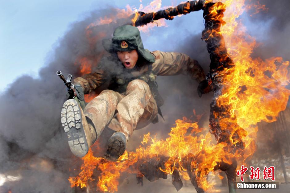 3月5日,黑龍江省軍區(qū)邊防某團官兵正在進行跨越火圈的實戰(zhàn)訓練。該部結合未來邊境作戰(zhàn)特點,設置模擬化戰(zhàn)場環(huán)境,營造硝煙滾滾、槍林彈雨、炮聲隆隆的實戰(zhàn)氛圍,從難從嚴從實戰(zhàn)角度出發(fā),深化“仗怎么打、兵怎么練”的實戰(zhàn)練兵力度,著力提升部隊實戰(zhàn)條件下的作戰(zhàn)能力,錘煉官兵敢打硬拼的過硬戰(zhàn)斗作風。中新社發(fā) 魏建順 攝