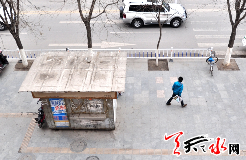 3月4日下午記者在秦州區(qū)住房和城鄉(xiāng)建設(shè)局了解到,根據(jù)2013年6月8日天水市住房和城鄉(xiāng)建設(shè)局與天水市城市管理綜合行政執(zhí)法局印發(fā)的《天水城鄉(xiāng)環(huán)境綜合整治實(shí)施方案》中“城市環(huán)境提升工程”第9條顯示:取諦占道亭篷。對市區(qū)范圍內(nèi)的電話亭、蛋奶亭、帳篷等進(jìn)行清理摸底,摸清產(chǎn)權(quán)單位,經(jīng)營業(yè)主和審批部門及設(shè)置年限后,向相關(guān)產(chǎn)權(quán)單位和審批單位下發(fā)整改通知書,由責(zé)任單位自行拆除,對拒不拆除的依法強(qiáng)制拆除。據(jù)該局一工作人員講,秦州區(qū)城區(qū)街道本身就顯狹窄,尤其民主路,建設(shè)路和解放路人行道更為突出,部分經(jīng)營者在經(jīng)營范圍上已超出了報刊,在夏天冰柜,烤腸等已擺在了人行道上,給市民的出行帶來了極大的不便。