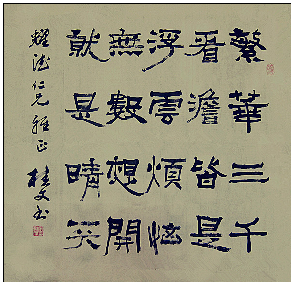 宋桂文,號長樂、慧明軒主,1966年生,甘肅天水人。擅隸、楷、行書,承著名書法家康務學、張改琴、郭治川等先生訓導,書藝漸精,作品多次入展全國、省、市書畫大展并獲獎。現(xiàn)為中國青年書法家協(xié)會會員、甘肅省書法家協(xié)會會員、天水市政協(xié)書畫研究院辦公室副主任、天水市民間文學研究會副會長,國家一級美術師(書法),高級書畫鑒定評估師。