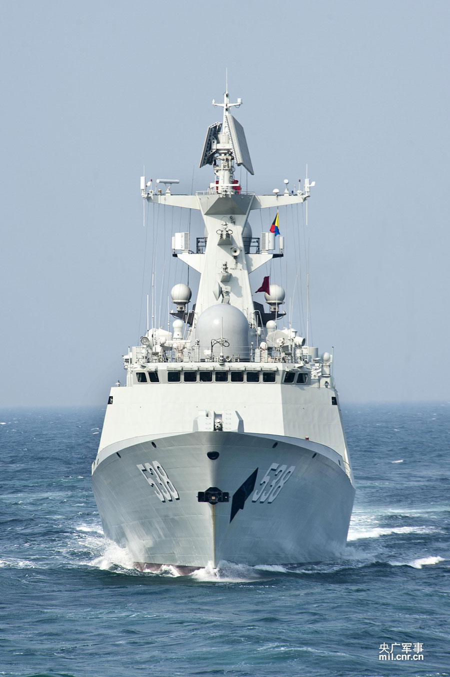 參加演練的海軍煙臺艦 藍(lán)明磊攝
