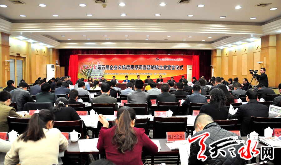 ????天天天水網(wǎng)訊(記者 何永德) 3月15日下午,由天水市委宣傳部、天水市文明辦、天水市工商局、天水市消費(fèi)者協(xié)會(huì)主辦,天水日?qǐng)?bào)社承辦的天水日?qǐng)?bào)“第五屆企業(yè)公信度民意調(diào)查暨誠(chéng)信企業(yè)宣言儀式”,天水晚報(bào)“首屆年度民生調(diào)查”。活動(dòng)在天水迎賓館舉行。