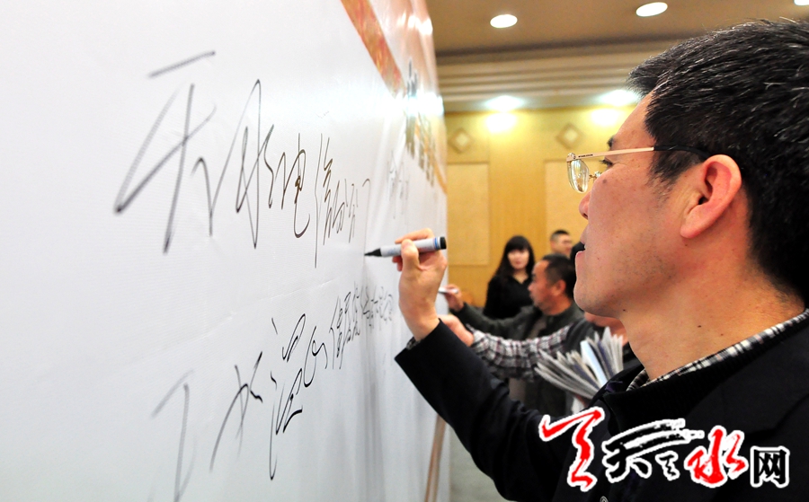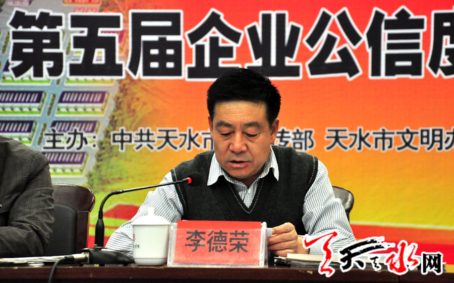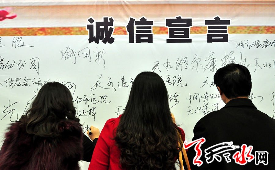 ????天水市人大副主任趙建強(qiáng)、天水市人民政府副市長(zhǎng)雷鳴、天水市政協(xié)副主席何道華、市委宣傳部副部長(zhǎng)趙子洲、市文明辦主任李德榮、天水日?qǐng)?bào)社黨委書(shū)記、社長(zhǎng)漆應(yīng)得以及相關(guān)部門(mén)負(fù)責(zé)同志,同時(shí)還有簽署誠(chéng)信宣言的企業(yè)界負(fù)責(zé)人、全國(guó)知名企業(yè)入駐天水經(jīng)營(yíng)的負(fù)責(zé)人參加了誠(chéng)信宣言儀式。
