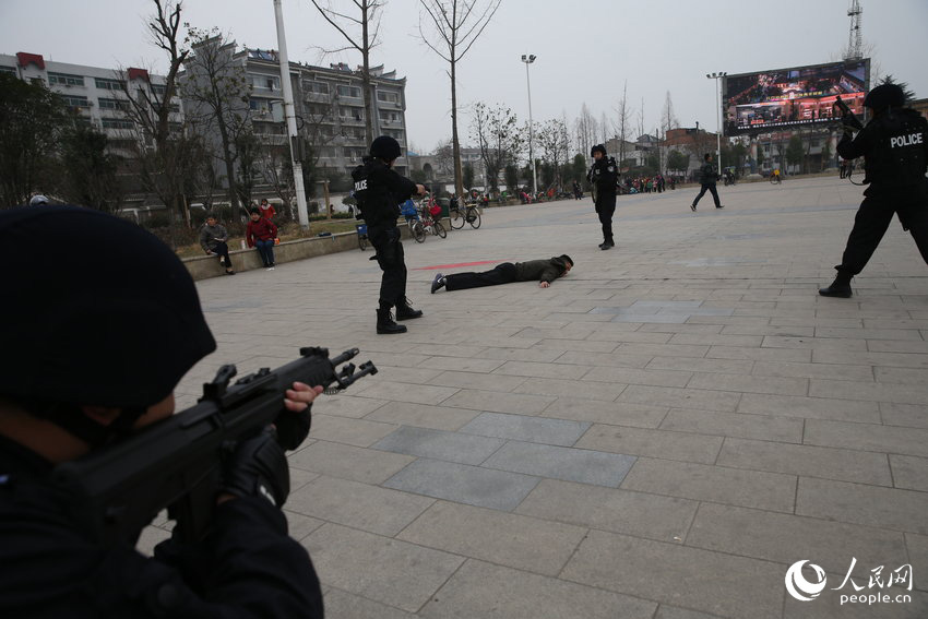 ????猖狂的持刀行兇者被特警擊中。王虎/CFP