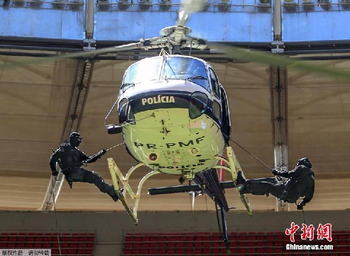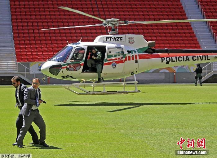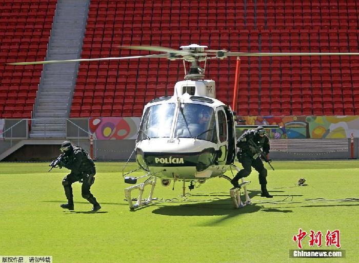 巴西警方出動(dòng)直升機(jī) 世界杯球場(chǎng)內(nèi)上演反恐演習(xí)