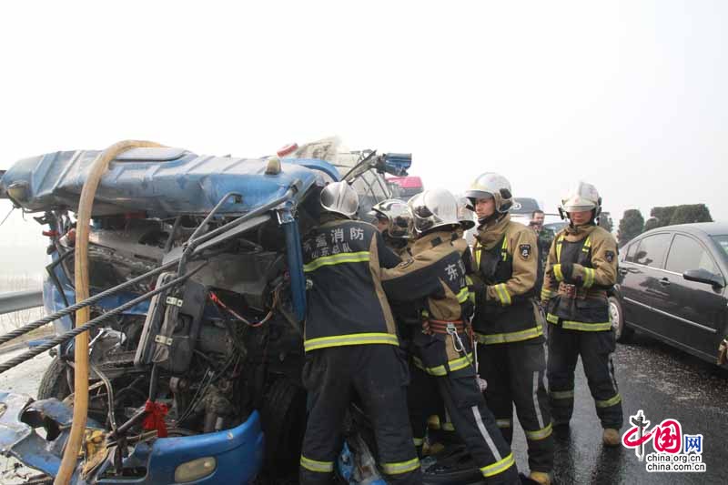 ????圖為消防人員正在緊急處理事故現(xiàn)場(chǎng)。圖片來源:中國(guó)網(wǎng)
