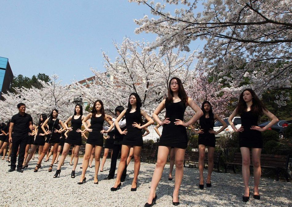 韓國(guó)模特女學(xué)生櫻花樹(shù)下上課