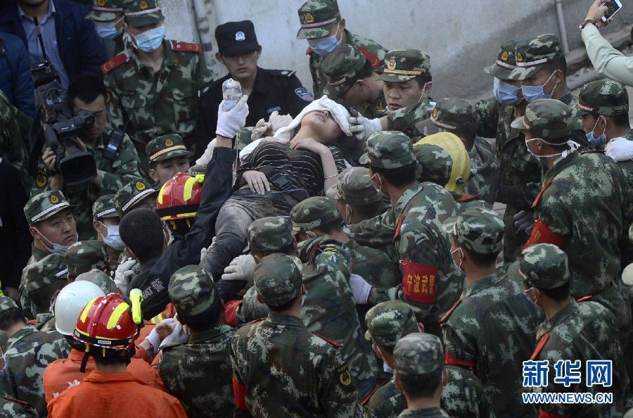 ????4月4日,救援人員將一名被埋壓的女子成功救出。當(dāng)日17時(shí)50分,浙江省奉化市政府發(fā)布消息稱(chēng),第7名受困者成功救出,此前救出的1名傷者經(jīng)搶救無(wú)效死亡。當(dāng)日9時(shí)許,奉化市錦屏街道居敬小區(qū)第29幢居民住宅樓西側(cè)房子發(fā)生坍塌。新華社記者韓傳號(hào)攝