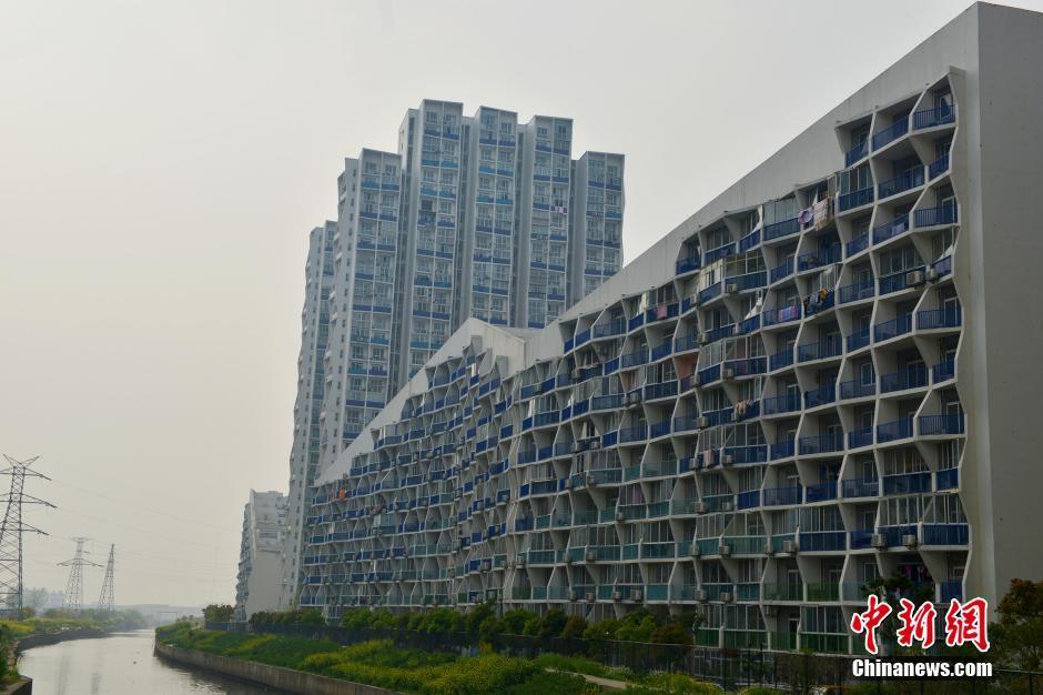 4月8日,無錫惠山區(qū)一處小區(qū)外立面造型凹凸有致,色彩豐富,十分引人注目。據(jù)了解,該樓盤由國外設(shè)計師以“波譜”理念設(shè)計而成,由于造型較為新穎奇特頗受年輕新市民喜愛,而年長者則多認(rèn)為“太怪”難以接受。中新社發(fā) 李一芳 攝
