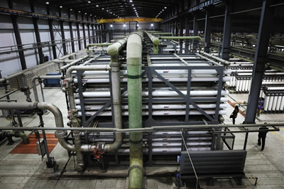 ????在唐山曹妃甸區(qū),北控水務集團設立的北控阿科凌曹妃甸海水淡化有限公司正在進行海水淡化生產,“現在1噸海水可收0.46噸淡水”,廠里負責人周海燕說,目前日產5萬噸,僅向曹妃甸區(qū)供水,是作為100萬噸海水淡化進京的先期示范項目。