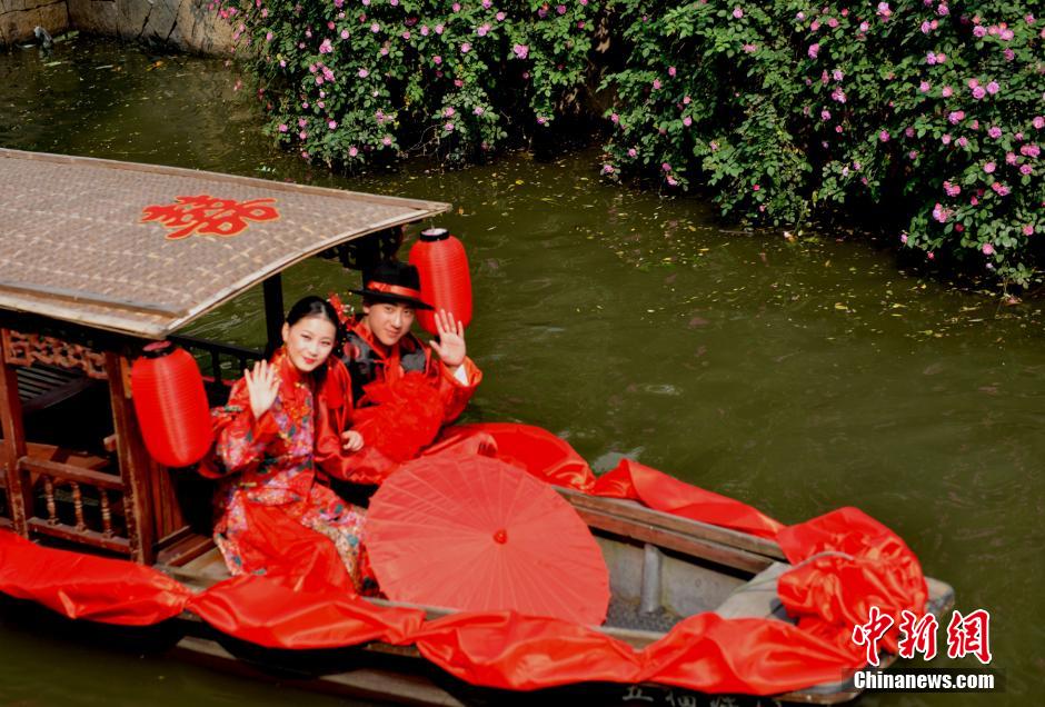 ????喜慶的鑼敲起來,甌式的禮服穿起來,乘船和自己心愛的人徜徉在美麗的塘河上……一對示范步驟的演員和5對新人成為首批體驗者在溫州塘河全程感受了一把“老溫州版”婚禮的喜慶勁兒。張茵 攝