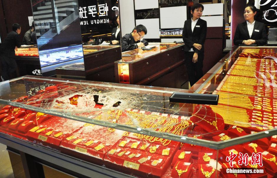 蘇州一金店遭搶 劫匪10秒內(nèi)搶走金飾