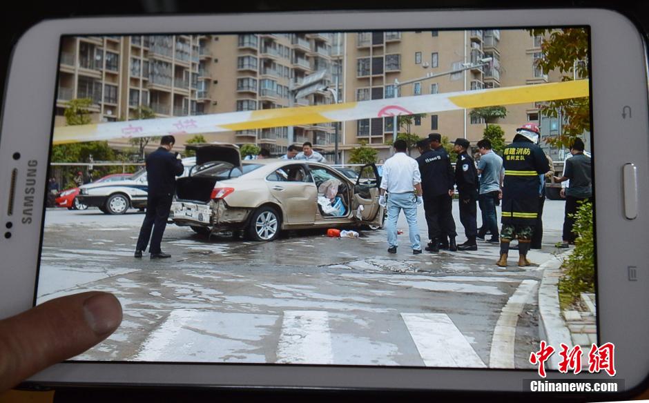??? 4月28日,福建省福州市閩侯縣發(fā)生一起惡性駕車撞人事件,圖為一位在場目擊者展示事發(fā)現(xiàn)場拍攝圖片。中新社發(fā) 劉可耕 攝