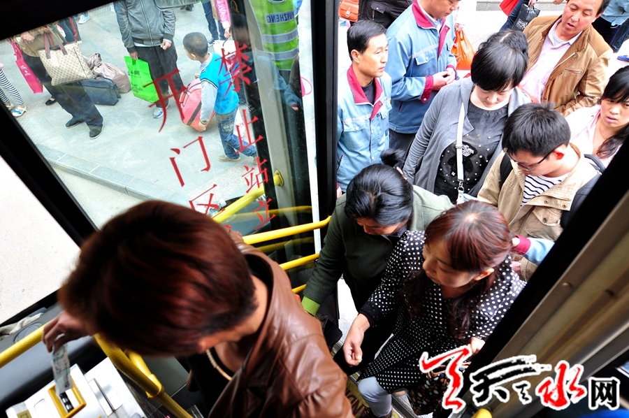 與鐵路相比發(fā)往麥積山景區(qū)的公交專線就顯得繁忙,麥積區(qū)大眾公交公司經(jīng)理助理趙引錄說,今年“五一”小長假首日,公司投放公交車29臺(tái),往返174趟,運(yùn)送游客1.4萬人,5月2日客流量出現(xiàn)高峰,當(dāng)日投放38臺(tái)車,往返190趟,運(yùn)送游客1.6萬人。今天準(zhǔn)備投放27臺(tái)車,預(yù)計(jì)運(yùn)送旅客8000余人,昨天是客流人數(shù)相對(duì)集中的一天,從早上6點(diǎn)開始,一直到晚上8點(diǎn)多才停運(yùn),由于昨天自駕游車輛的急劇上升,導(dǎo)致發(fā)往麥積山景區(qū)的34路公交專線車在路上受阻,早上9時(shí)發(fā)的一趟車,路上就走了3個(gè)小時(shí),到11時(shí)才回到始發(fā)站點(diǎn),昨天乘座公交專線前往景區(qū)的游客最多時(shí)達(dá)到500余人,都集中在站前等車。今天就相對(duì)少多了。記者在現(xiàn)場看到,從火車方向過來的旅客陸續(xù)上了34路公交車,但在采訪中了解到,乘座公交車的旅客部分為返程回家的本地人,只有少部分是去往景區(qū)的游客。隨后記者乘車在前往麥積山景區(qū)的路上看到,過往吳家崖收費(fèi)站的車輛已變得零散,臨時(shí)啟用的賈河停車場已是空空如也,一路上并沒有出現(xiàn)昨天堵車十幾公里的現(xiàn)象。只是在臨近景區(qū)時(shí)有近兩百米路途的堵車,但沒有出現(xiàn)滯留。