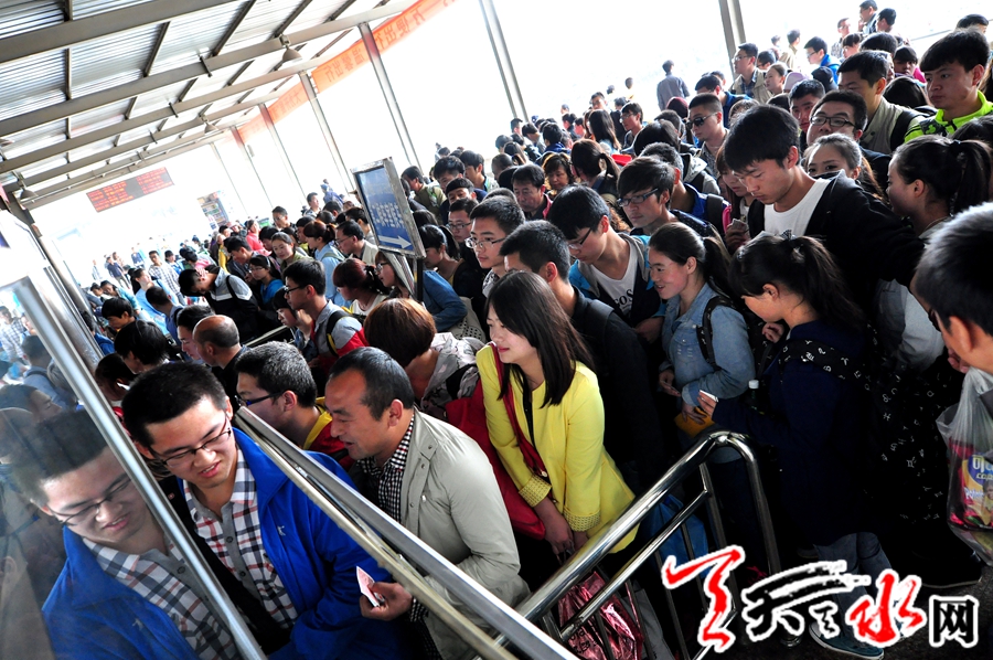 天天天水網(wǎng)訊;記者何永德 5月3日,“五一”小長假進(jìn)入最后一天,隨著天水景區(qū)游客人數(shù)和車流量減少,我市“五一”小長假旅游市場漸進(jìn)尾聲,公路鐵路進(jìn)入返程流,記者在天水火車站和發(fā)往麥積山景區(qū)的公交站點(diǎn)了解到,今年鐵路在“五一”小長假期間旅客明顯減少,發(fā)往景區(qū)的公交專線2日出現(xiàn)高峰后,今天客流明顯減少,