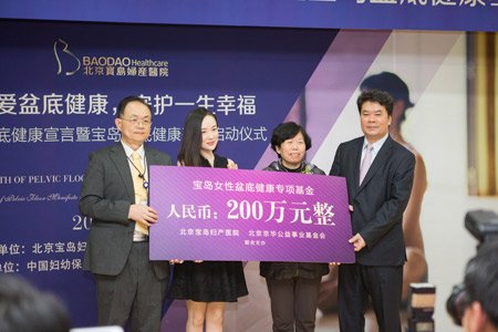 ????“女性盆底健康宣言暨寶島女性盆底健康基金啟動(dòng)儀式”26日在京舉行。中國婦幼保健協(xié)會(huì)辦公室主任宋世琴教授、北京京華公益事業(yè)基金會(huì)理事長(zhǎng)鄭武、北京寶島婦產(chǎn)醫(yī)院院長(zhǎng)余堅(jiān)忍、北京寶島婦產(chǎn)醫(yī)院董事長(zhǎng)楊文秀等出席了啟動(dòng)儀式。演員霍思燕應(yīng)邀出席,作為“寶島婦女盆底健康運(yùn)動(dòng)”明星推廣大使,為全面推廣“寶島婦女盆底健康運(yùn)動(dòng)”拉開序幕。圖為寶島女性盆底健康基金啟動(dòng)。