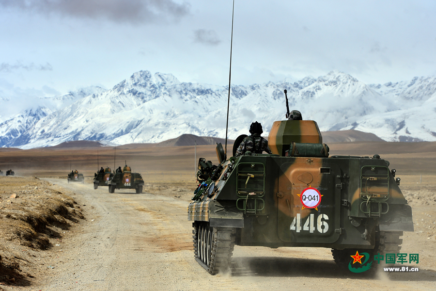 4月28日,駐藏某旅裝甲分隊(duì)進(jìn)行遠(yuǎn)程快速機(jī)動(dòng)。特約記者張震攝
