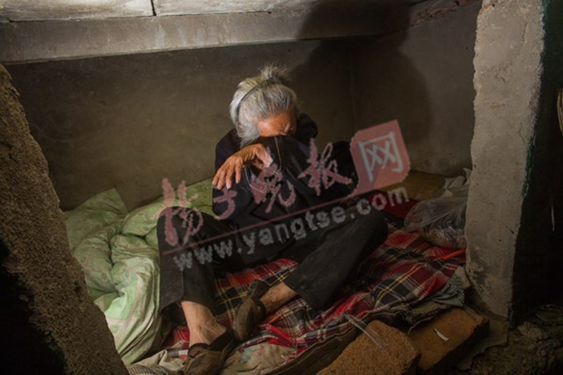 ????老人坐在垃圾箱內(nèi)抹淚。 來源:揚子晚報