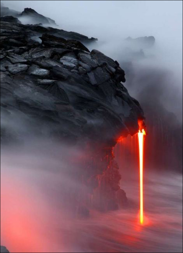 ????攝影師冒死拍攝夏威夷巖漿入海景象 宛若"地獄之火"(網(wǎng)頁截圖)