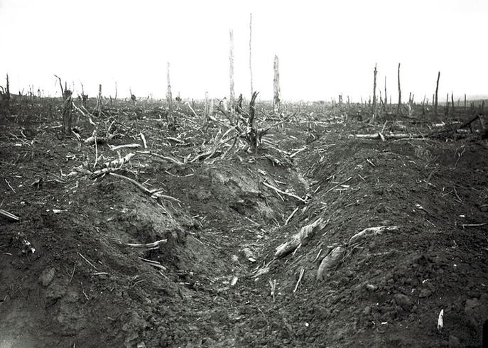 ????1916年9月份,在索姆河附近戴爾維爾森林中,被炮火毀掉的廢棄戰(zhàn)壕。麥卡林說:“看看這只有月球上能看到的場(chǎng)景,破壞嚴(yán)重,好像沒什么東西能再生長(zhǎng)。我所經(jīng)歷的戰(zhàn)場(chǎng)中,只有1968年年越南春節(jié)攻勢(shì)能與此相比。當(dāng)時(shí)美軍對(duì)越南順化(Hue)發(fā)動(dòng)炮擊和空襲,當(dāng)攻擊結(jié)束時(shí),那里變成一片廢墟?!?/p>