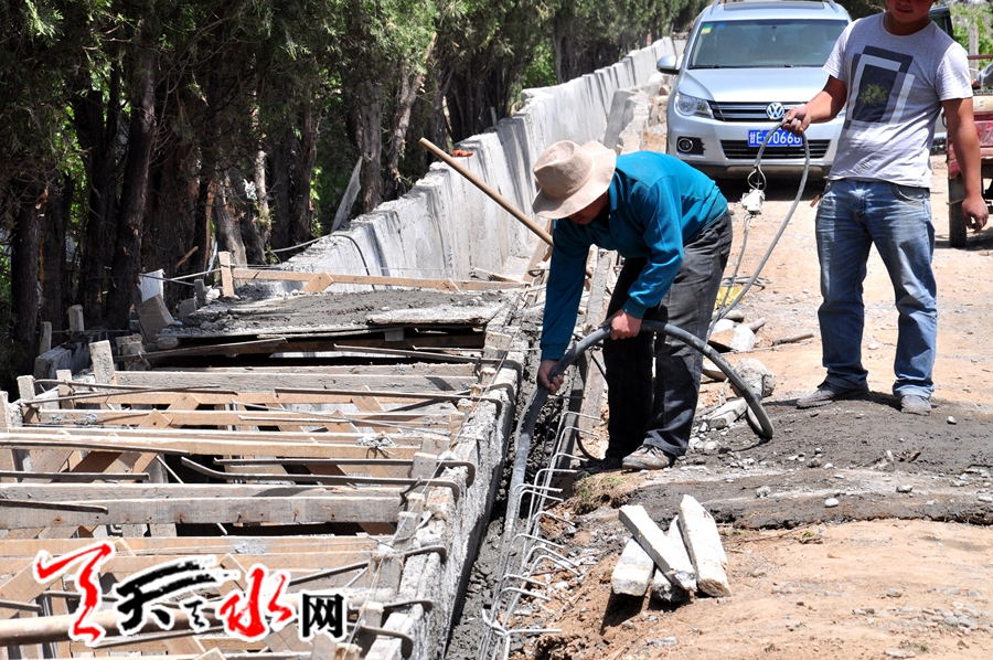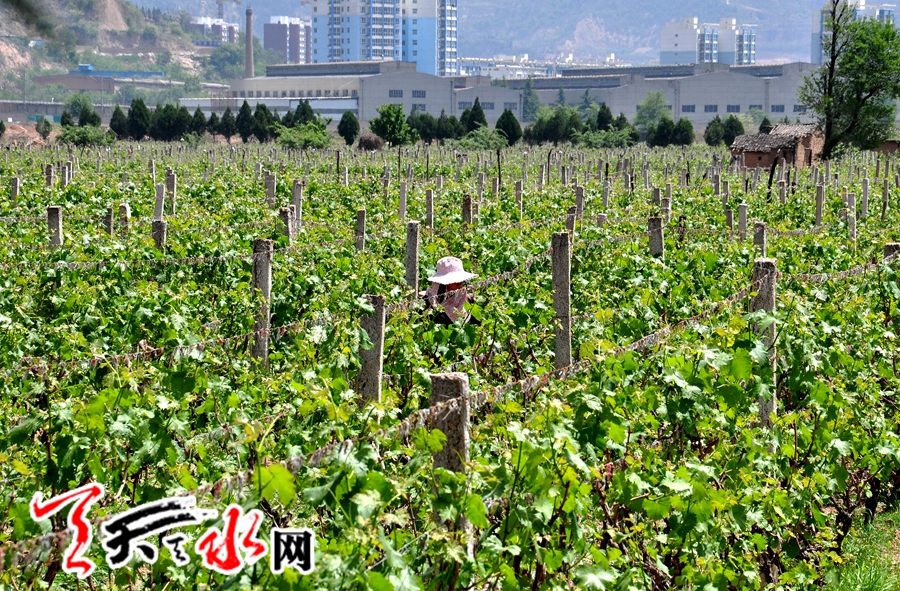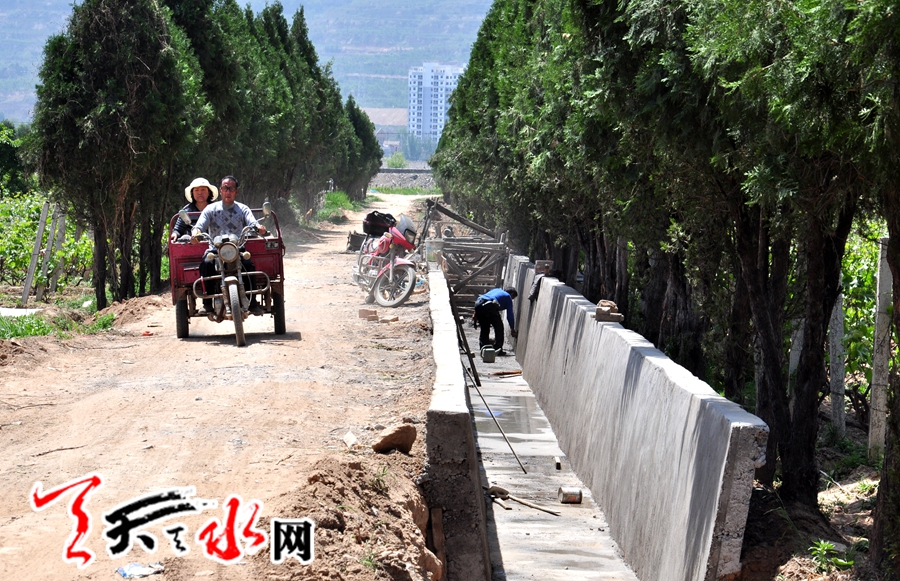 ????天天天水網(wǎng)訊(記者 何永德) 5月10日,麥積區(qū)花牛鎮(zhèn)峽口村王姓村民正在給種植的葡萄噴灑農(nóng)藥,與此同時(shí),一條長(zhǎng)1500米、寬2.5米的排洪渠正在與她耕地相臨的村道旁加緊修建當(dāng)中。