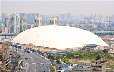 ????杭州市區(qū)三里亭小區(qū)的一個(gè)巨型充氣帳篷引來了過路人好奇的目光。帳篷高達(dá)36米,占地約2萬平米,遠(yuǎn)遠(yuǎn)望去好像一個(gè)白色巨堡。據(jù)悉,充氣帳篷所在的地塊曾是杭州農(nóng)藥廠,廠區(qū)搬遷后土地就一直閑置著,在上面搭建帳篷,是為了防止異味擴(kuò)散。