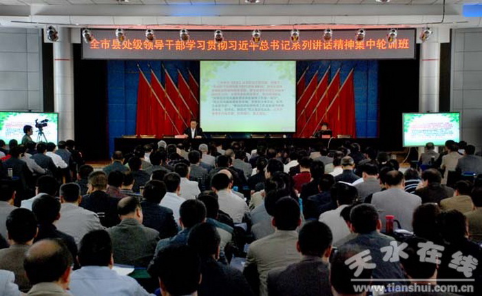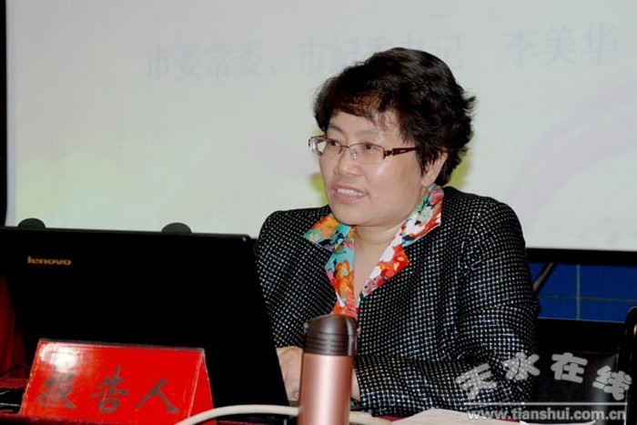 ????5月12日,在全市縣處級(jí)領(lǐng)導(dǎo)干部學(xué)習(xí)貫徹習(xí)近平總書記系列講話精神集中輪訓(xùn)班上,天水市委常委、市紀(jì)委書記李美華做了題為“深入學(xué)習(xí)貫徹黨的十八屆三中全會(huì)精神,扎實(shí)推進(jìn)黨風(fēng)廉政建設(shè)和反腐敗工作”的專題輔導(dǎo)報(bào)告。