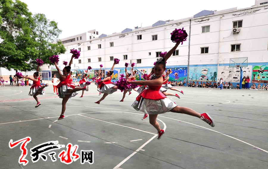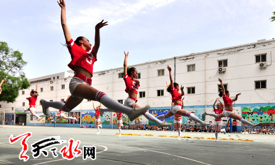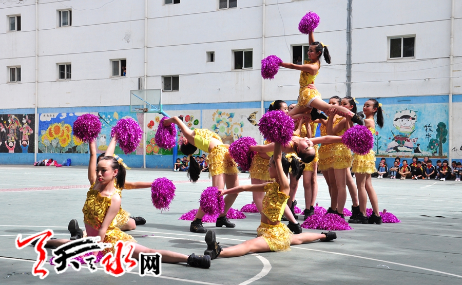 天天天水網(wǎng)訊 (記者何永德) 5月26日,2014年天水市青少年校園足球活動(dòng)秦州賽區(qū)啦啦操比賽在秦州區(qū)新華門(mén)小學(xué)成功舉辦,來(lái)自秦州區(qū)9所中小學(xué)校園足球布點(diǎn)學(xué)校參加了本次比賽。