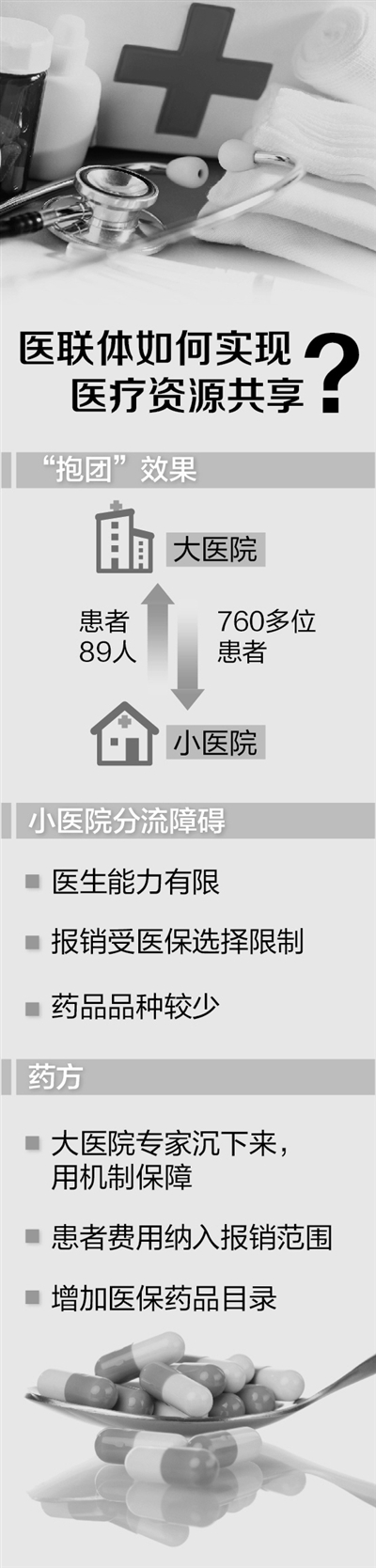 ????過去,大醫(yī)院因?yàn)榧辛藘?yōu)質(zhì)醫(yī)療資源,病患云集,造成看病難;而小醫(yī)院、社區(qū)醫(yī)院則長(zhǎng)年“吃不飽”,門可羅雀,造成醫(yī)療資源浪費(fèi)。如何改變這種旱澇不均的局面?組建醫(yī)聯(lián)體就是一種探索:讓大醫(yī)院的醫(yī)生去基層醫(yī)院坐診,從而帶動(dòng)大醫(yī)院的慢性病人去基層醫(yī)院康復(fù)。