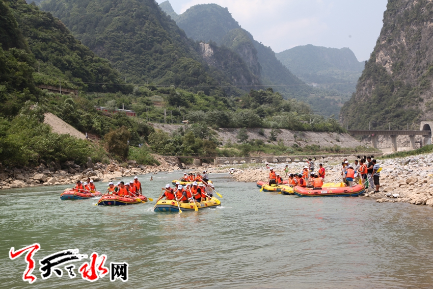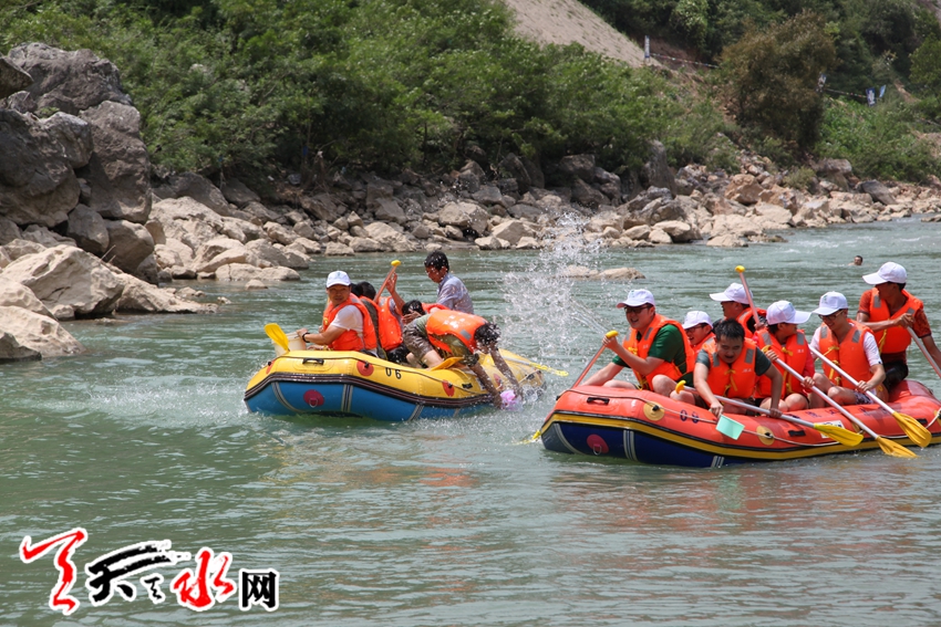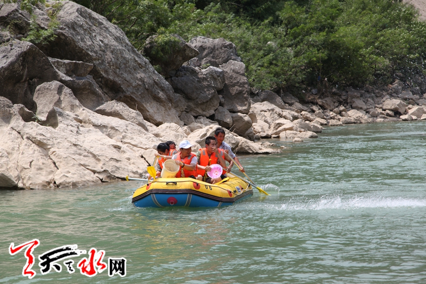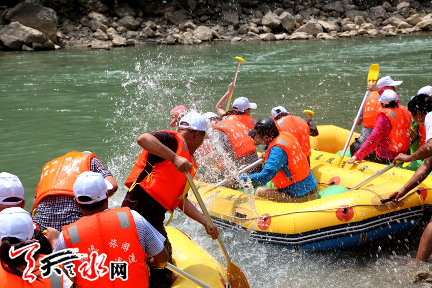 漂流對于北方人而言,意象中是在激流中順著湍急的河(江)流從上游漂到下游,讓游人感受冒險帶來的刺激與樂趣,然而此次天水市縣主流網(wǎng)絡(luò)媒體代表卻在這少有的干旱之年享受了一次漂流帶來的另一番樂趣。
