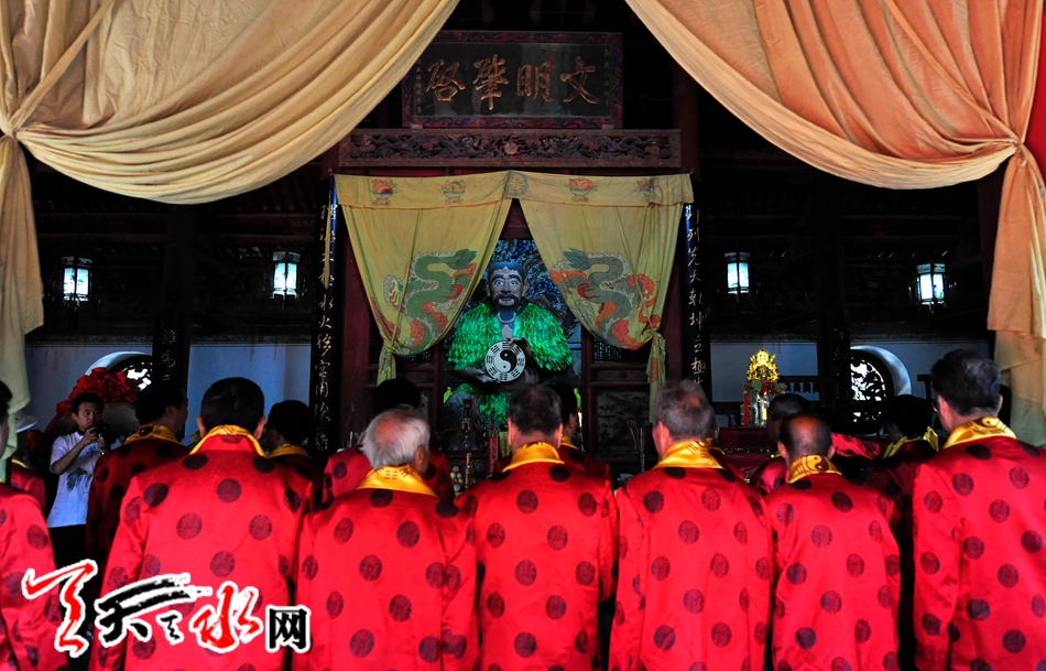 天天天水網(wǎng)訊 記者何永德 農(nóng)歷七月十九(8月14日)上午9:50分,備受天水人民關(guān)注的甲午(2014)年秋祭中華人文始祖太昊伏羲典禮在伏羲廟隆重舉行。來自社會各界人士及數(shù)千名群眾參加了祭祀典禮。
