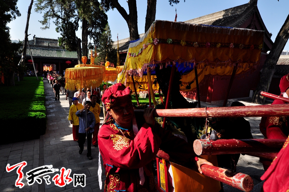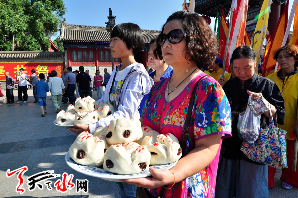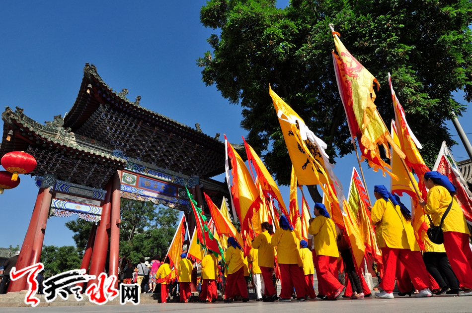 群眾自發(fā)組成的儀仗隊沿伏羲城環(huán)繞一周迎獻(xiàn)飯